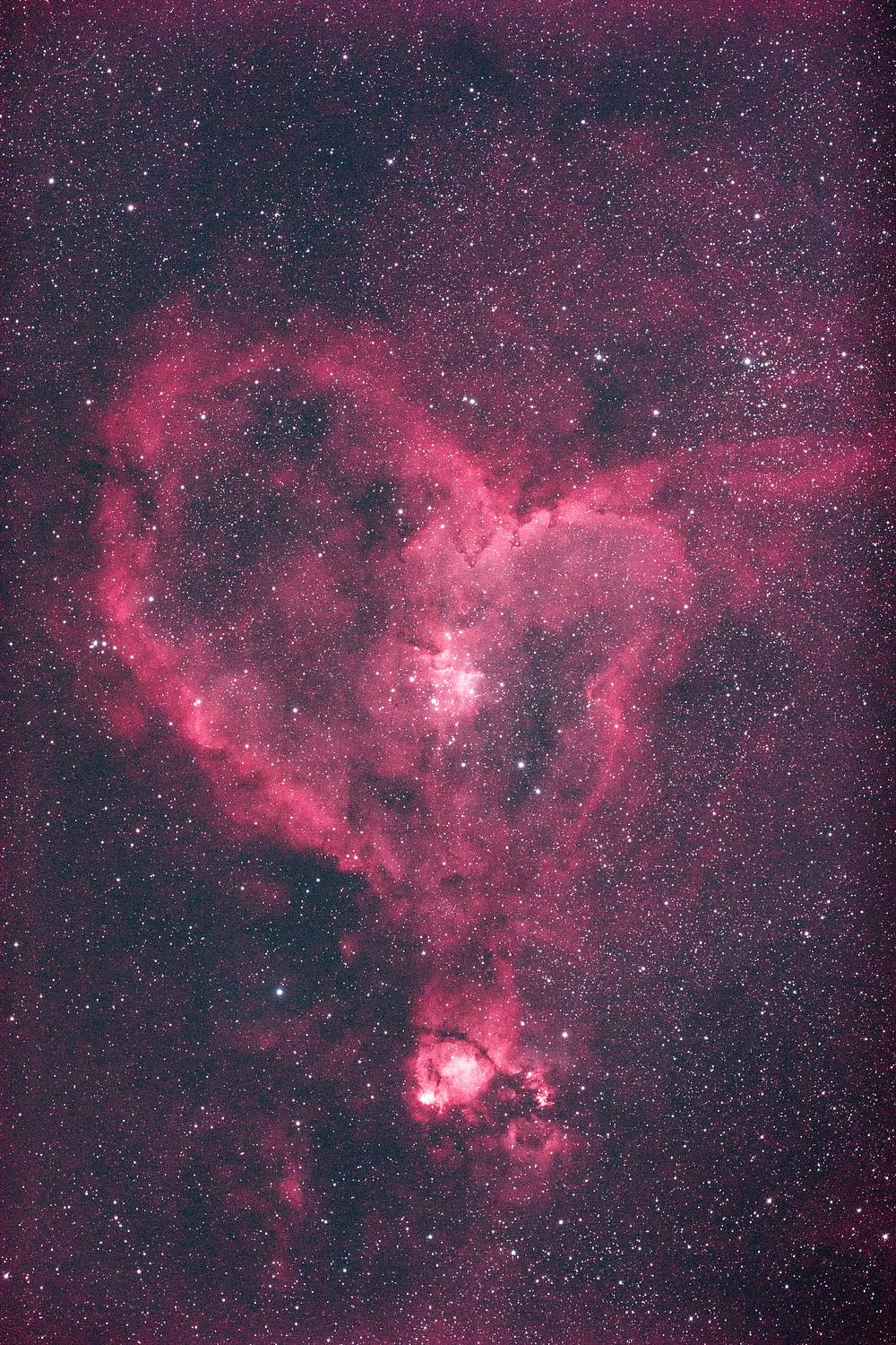 A 16 minutes exposure of The Heart Nebula. Shot from the Mojave Desert in California.